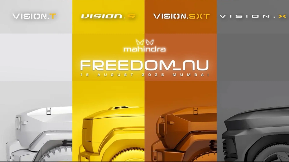 The Vision T is the third concept slated for unveiling at the Freedom_NU event, and is widely anticipated to be a near-production-ready evolution of the Thar.E electric. This off-roader was first showcased in 2023, combining Mahindra’s iconic off-road heritage with advanced electric vehicle technology. Teasers shared by Mahindra hinted at the Vision T concept retaining the signature Thar design language, sporting a boxy silhouette, squared-off wheel arches, chunky off-road tires, visible bonnet latches, and a rugged, upright stance.