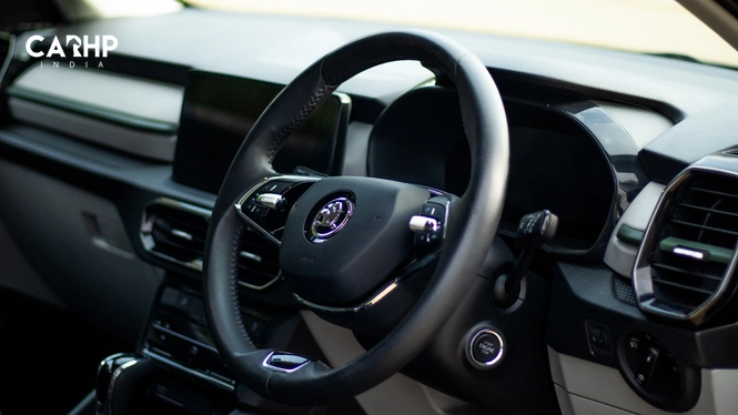 Visibility is excellent thanks to slim A pillars and a commanding seating position. The steering offers proper reach and rake adjustment. At night, the ambient lighting creates a calm atmosphere inside the cabin.